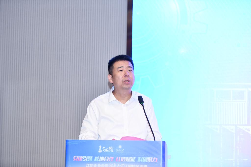 张梁向莅临大会的各位领导和各位来宾表示热烈欢迎;向长期以来给予江南大学关心、支持和帮助的江阴市委市政府和各界朋友表示衷心的感谢。他简要介绍了学校事业发展的近况,特别是江阴霞客湾校区启用以来取得的良好成绩。他指出,“红链赋能”行动是政校企联动创新举措,并提出四点意见:一是党建引领,筑牢校地合作“红色引擎”;二是校地携手,共绘霞客湾“科创蓝图”;三是红链赋能,打造产学研“融合生态”;四是科创聚力,开启校地“共赢新篇”。江南大学将与江阴市委市政府、各位企业家朋友同心勠力、携手同行,以党建引领为方向,以科技创新为驱动,以合作共赢为目标,共同书写校地融合发展的崭新篇章。