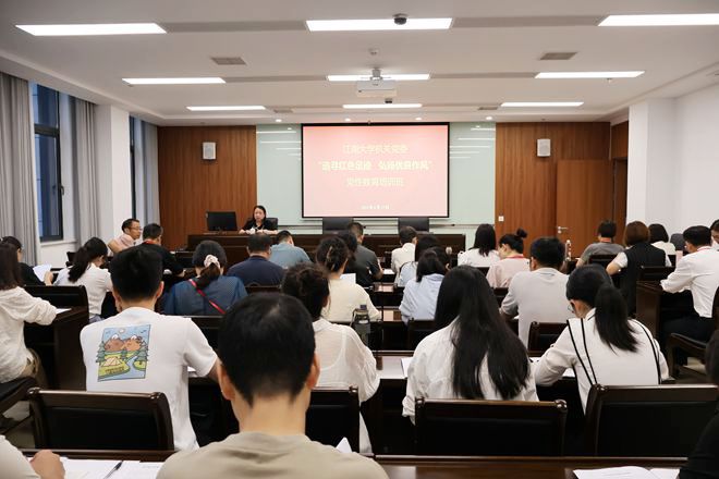 理论学习环节,机关党委书记张菁结合在高校监督检查业务培训中的所学所悟,系统介绍了培训课程设置,重点阐释了其中关于做好高校纪检监察工作的相关内容。信息化处副处长许亦男以“协同破界 融合赋能”为题,从“管理与服务融合”“便捷与安全融合”“现在与未来融合”三个维度,向学员们介绍了信息化建设管理处近年来在“深化数智校园建设 助推机关工作提质增效”方面的创新实践。江南文化研究院、无锡大运河文化带建设研究院、江南大学历史研究院副院长、马克思主义学院刘大禹教授为学员们讲授了“中国共产党作风建设的传承与实践”专题党课,系统梳理了自“三湾改编”以来中国共产党作风建设的发展历程。