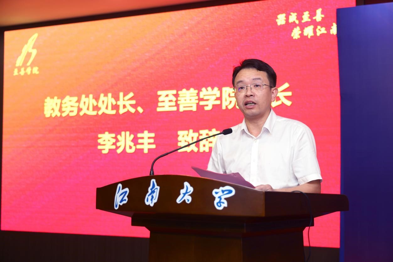 典礼结束后,李兆丰为2025级至善新生讲授了主题鲜明、内涵深刻的“新生第一课”。他紧密围绕至善学院“探索一流人才拔尖化培养”的使命,聚焦“学术规范之基”“创新实践之要”“家国情怀之魂”三个核心维度,深刻阐释了江南大学“笃学尚行,止于至善”的校训精神。李兆丰结合学院“双院协同+动态管理”的培养模式和“跨学科选修+创新项目”的特色体系,勉励新生勇立时代潮头。他特别强调,要以学科竞赛为重要实践载体和成果检验平台,在人工智能、生物医药等前沿科技领域勇于开拓创新,学习优秀项目“专创融合”“数智赋能”“驾驭风口”“厚积薄发”的特质。同时,他鼓励新生胸怀天下,未来在乡村振兴、全球治理的广阔舞台上积极贡献中国青年的智慧与力量。