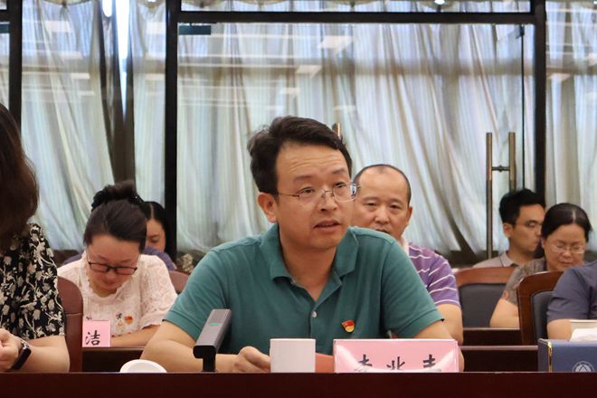 教务处(教师发展中心)、本科招生办公室党支部书记李兆丰为在座党员送上生日祝福。他勉励全体党员要永葆忠诚品格、锤炼担当精神、涵养党员本色,步履铿锵,以机关党员的匠心更好服务师生。