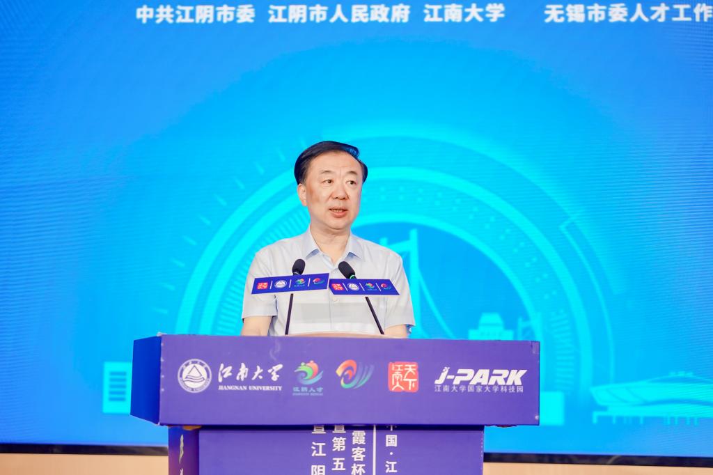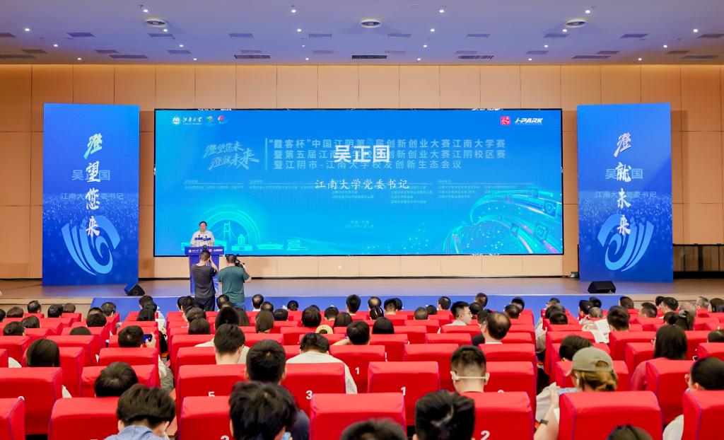 7月5日,江阴市-江南大学校友创新生态会议暨第五届江南大学校友创新创业大赛江阴校区赛在江南大学江阴校区举办。无锡市委常委、江阴市委书记许峰,江南大学党委书记吴正国,校党委副书记、校友总会副会长倪松涛,江阴市委常委、组织部部长吴莉萍,江阴市委常委、江苏江阴-靖江工业园区党工委书记尹志华,江阴市委办主任、市人大常委会副主任郭诚,江阴市人民政府副市长季震,江阴市政协副主席、商务局局长时平,江阴市政府党组成员、霞客湾科学城党工委书记、管理办主任谢映军;无锡市委组织部人才处副处长周梦健;江南大学党委办公室、市校共建办公室、江阴校区管理办公室、社会合作与校友联络处、资产管理经营有限公司、国家大学科技园、集成电路学院、智能制造学院、数字科技与创意设计学院、纤维工程与装备技术学院;以及来自江南大学广州、上海、浙江、安徽、南京、常州、南通、泰州、江阴等校友分会代表;参赛项目团队和大学生代表共300余人参加活动。