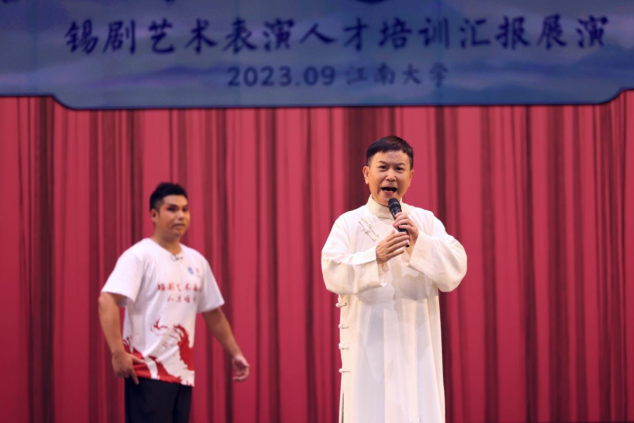 9月26日晚19点,由国家艺术基金管理中心、江南大学主办,江南大学人文学院、教育学院承办的国家艺术基金《锡剧艺术表演人才培训》成果汇报展演在江南大学文浩馆举办,江南大学党委常委、副校长倪松涛在演出前致辞。