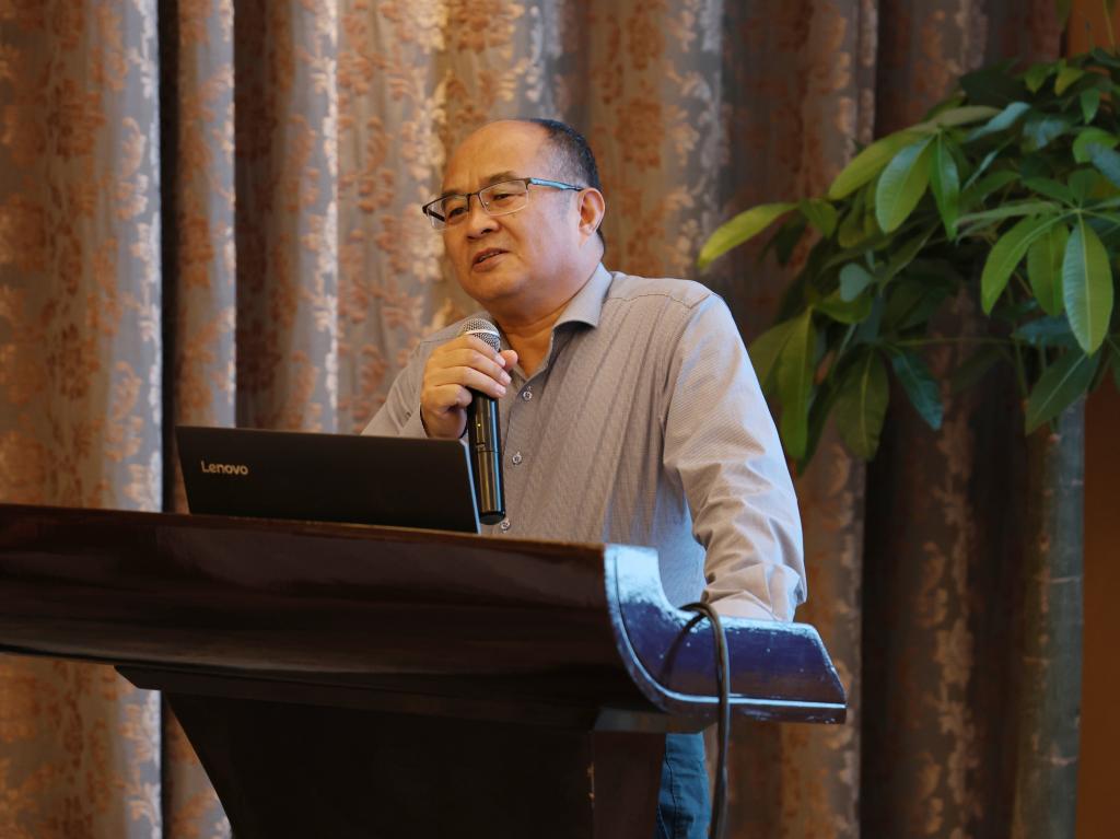 副院长马丕波作科研工作汇报。他详细分析了过去五年学院各研究团队在科研经费、国家基金、高水平论文等方面取得的成绩,对标新一轮任期目标,指出未来学院科研工作发展的难点和痛点,号召全体教授共同为科研进步贡献智慧和力量。