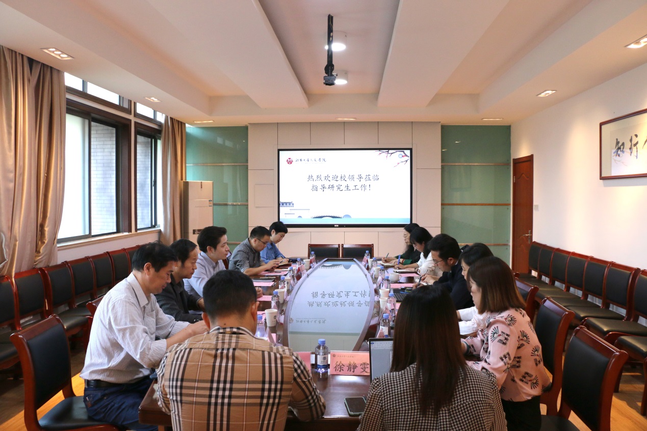 10月19日上午,校党委常委、副校长马鑫、倪松涛,党委研究生工作部部长、研究生院院长吴小俊,研究生院副院长潘如如、姚文生,以及研究生工作部王维懿一行6人赴人文学院调研研究生教育管理工作。人文学院党委书记姚剑英,副院长(主持工作)伍红林,党委副书记、副院长李萍,副院长于书娟、王芳,研究生秘书、研究生辅导员参与座谈。会议由吴小俊主持。