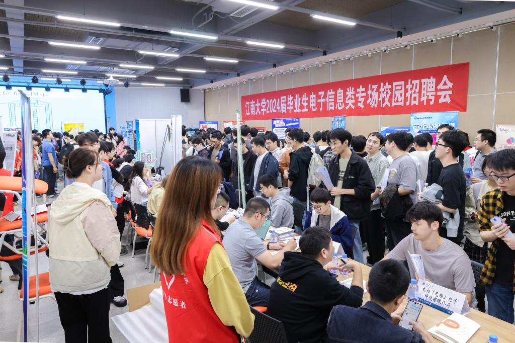 金秋送爽扬帆起,丹桂飘香共筑梦。10月25日下午,江南大学2024届毕业生电子信息类专场校园招聘会在北区大学生活动中心招聘大厅举办。本次招聘会由物联网工程学院和人工智能与计算机学院联合举办,汇聚中国电科、理想汽车、华润微电子、博世、卡特彼勒、中科曙光等龙头领军企业、科研院所、事业单位等用人单位54家,提供优质就业实习岗位2000余个,招聘专业涉及电气工程、自动控制、集成电路、计算机、软件工程等众多电子信息专业领域,涵盖本、硕、博各学历层次,吸引800余名学生到场参加。