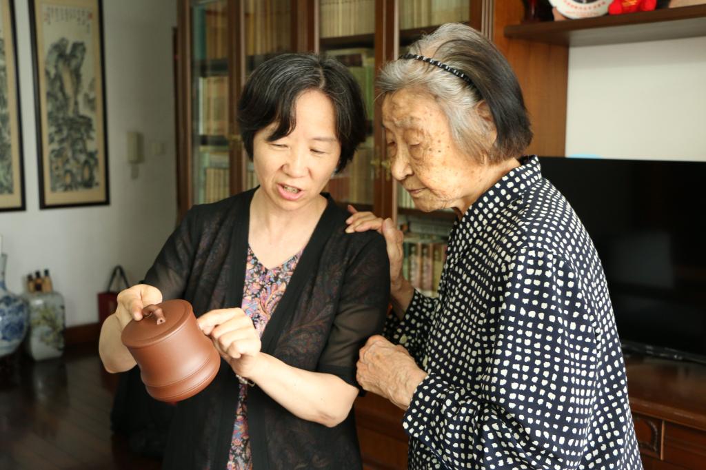 于漪老师从教70多年,长期躬耕于中学语文教育,退休之后依然为教育奔忙,虽已95岁高龄,但仍精神矍铄。她看到江苏的家乡人来访非常高兴,表示对家乡有着深厚的感情。“选择教师,就选择了高尚,选择了与国家前途、人民命运紧密相连休戚与共的事业……同学们要有高昂的志趣,锲而不舍积极向上的精神,立下强教有我的宏伟志,学得立德树人的真本领,砥砺学识,健壮体魄,发挥潜在力量和创造智慧,成长为德智体美劳全面发展有才干、有责任担当的中国特色社会主义基础教育的中坚力量。深深的祝福,殷切的期盼!”在书香浓郁的客厅里,于漪老师面带微笑、饱含深情地读着自己写给人文学院同学的信。古色古香的信笺,端庄隽秀的字迹,书信流露出于漪老师赤诚的教育情怀和对青年学生的殷殷嘱托。