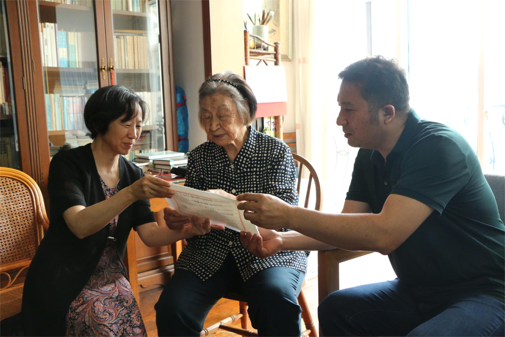 于漪老师向人文学院领导赠送亲笔书信和书籍