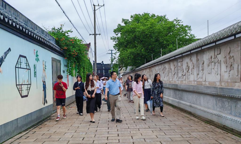 为深入学习贯彻习近平新时代中国特色社会主义思想和党的二十大精神,落实新时代党的建设总要求,强化基层党支部书记责任担当,切实把思想伟力转化为干事创业的强大合力和生动实践,构建新时代基层党建工作新格局,6月28日,设计学院党委书记王维青、党委副书记兼副院长江琳娜带领师生党支部书记、党员代表前往无锡市黄土塘村开展实践研学活动。黄土塘村党委书记蒋红江、党委副书记杨军热情接待了王维青一行。活动由党建辅导员滕影主持。