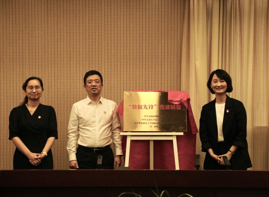 为庆祝中国共产党成立103周年,江南大学法学院会同无锡市数据局和华东政法大学国际金融法律学院共同开展“数据先锋·一起向未来”党建共建活动。无锡市数据局党组书记、局长胡逸、江南大学法学院党委书记陆敏芝、华东政法大学国际金融法律学院党委书记朱小萍以及三方单位党员代表参加本次活动。