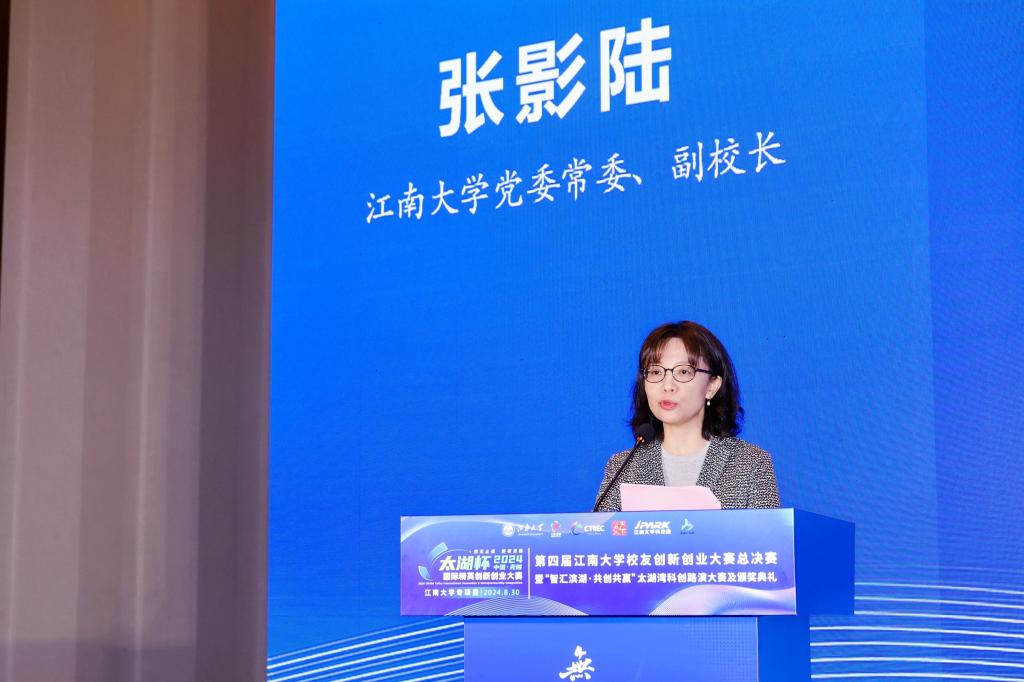 张影陆在致辞中表示,江南大学校友创新创业大赛是江南大学与滨湖区人民政府联合举办的一项重要赛事,今年的大赛与中国无锡“太湖杯”国际精英创新创业大赛和“智汇滨湖·共创共赢”太湖湾科创路演大赛合办,进一步加深了市校合作的融合度、结合度和契合度。江南大学校友创新创业大赛不仅是一场赛事,更是一次汇聚智慧、分享经验、探索未来的创新盛会。希望海内外校友矢志创新、努力奋斗、引领未来、勇攀高峰,与母校同呼吸、共命运、齐发展,在无锡这片沃土上放飞梦想、成就事业,继续关心和支持母校的发展。