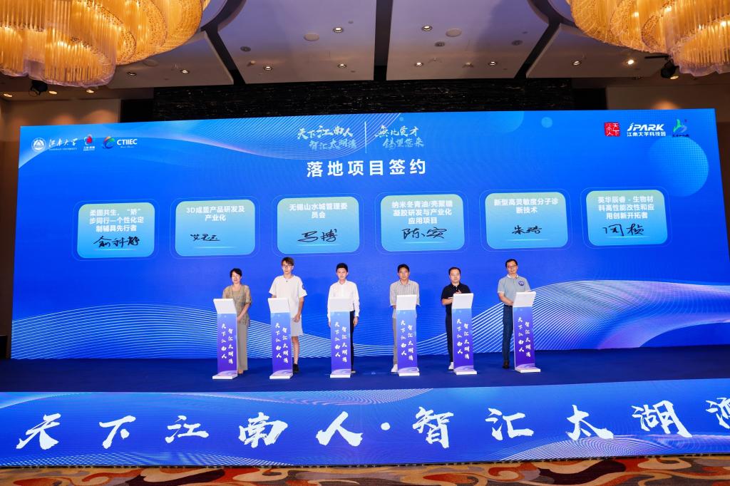 江南大学与滨湖区人民政府已连续四年合作举办“天下江南人·智汇太湖湾”校友创新创业大赛,旨在构建“政府-高校-园区-资本”四位一体的创新服务平台,为人才团队提供产融对接、项目孵化、产品推广及产业链协作等全方位服务,吸引并助力校友项目在无锡创业发展。大赛自启动以来,已成功推动98个项目在无锡注册落地,其中21个项目获得高层次人才政策支持,5个项目在当年即获近5000万元天使投资,有效提升了校友创新创业项目的转化率、落地率及成功率。