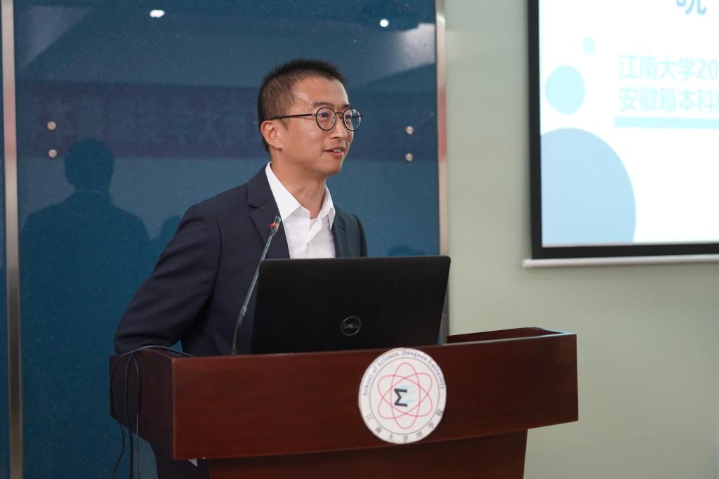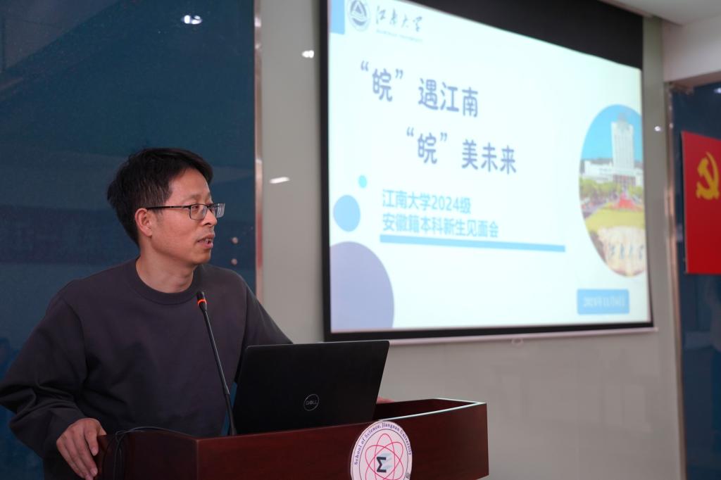 朱忠明代表安徽招生组欢迎2024级安徽籍本科新生加入江南大学,并对本年度安徽招生情况做了简要介绍,安徽省2024年新高考落地,理学院扩大招生组人员规模,赴安徽各地生源重点中学,加强招生宣传和志愿填报咨询服务,江南大学“小而精”的专业组设置得到了家长和考生的一致好评,生源质量稳步提升。