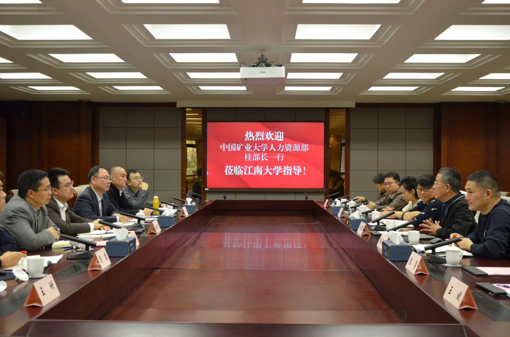 11月8日下午,中国矿业大学党委教师工作部、人力资源部部长桂夏辉一行来校调研交流,江南大学人力资源处处长赵建新、党委教师工作部部长张海峰及人力资源处相关人员参加了此次调研交流会,会议由赵建新主持。