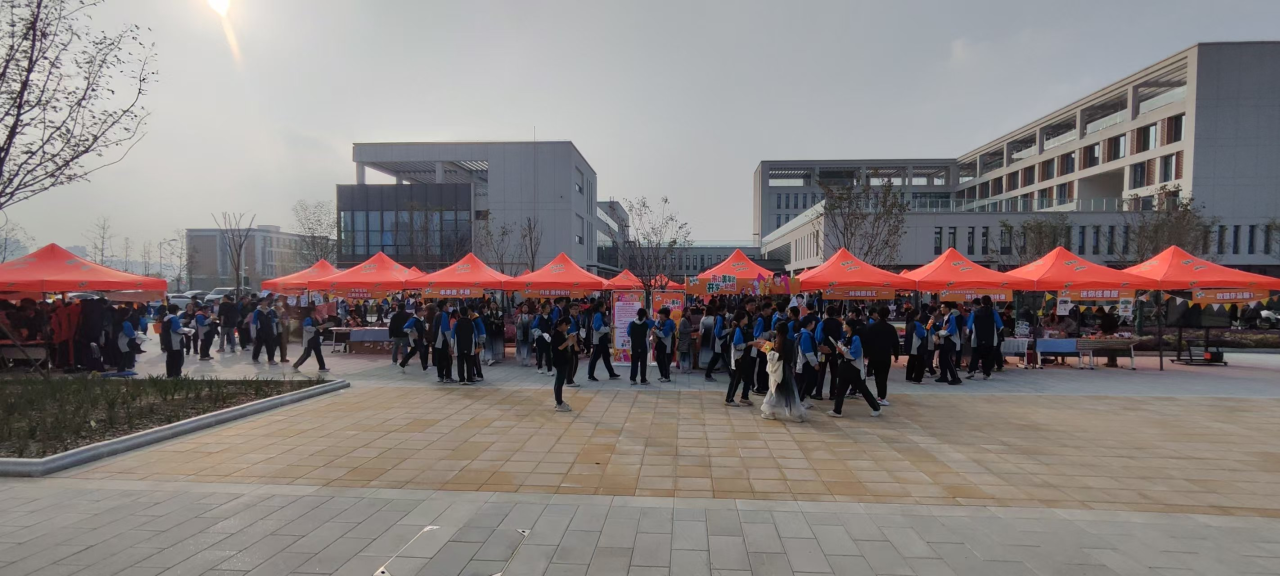 为丰富校园文化,推动美育浸润校园,11月13日,数字科技与创意设计学院“一起来摊玩吧”秋日文化创意集市在霞客湾校区北广场顺利举办。学院党委书记胡振宇、副书记李萍、校团委副书记吴垚、青阳镇党委委员陈怡、青阳镇团委书记王彬,以及青阳中学、青阳实验小学、青阳金桥实验学校的师生代表出席,该活动吸引了江阴校区近千名师生,青阳中学、青阳实验小学、青阳金桥实验学校250名中小学生等亲临现场参加活动。活动融入非遗文化、学生创意摊位、学生作品展、快闪表演等板块,上演了一场校园美育文化“盛宴”。