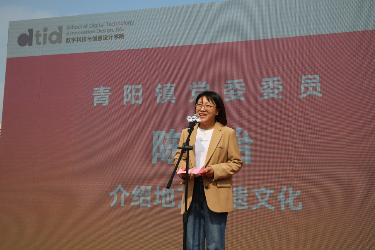 开幕式上,胡振宇首先致辞,他指出秋日文化创意集市既是一场当代青年大学生们,推进中华优秀传统文化创造性转化和创新性发展的一次专业实践课,也是江南大学立足江阴,引领推进“大中小学思政一体化”的一堂美育实践课。随后,D-club学生俱乐部发布了创意十足的宣传视频,展示了数创学子在创意文化领域的探索。紧接着,吴垚为D-club俱乐部授牌,肯定学生社团在推动文化创新方面的积极贡献。伴随着一阵阵掌声,胡振宇宣布集市正式开幕。李萍、王彬共同鸣锣,正式启动这场文化盛宴。