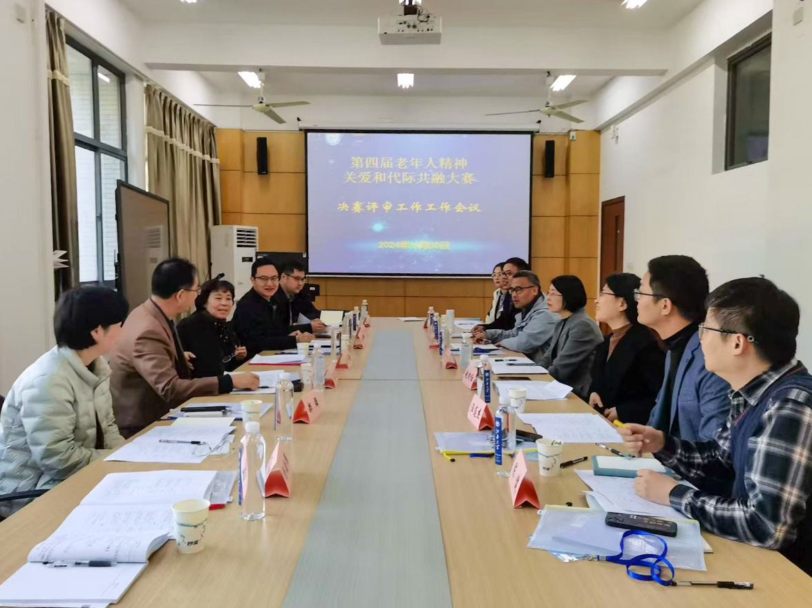 11月30日上午,案例大赛评审工作会议在江南大学法学院A316会议室举行,会议由法学院副教授、无锡市老龄科学研究中心副主任王金元主持。江苏省老年学学会原副会长、江苏省老年学学会精神关爱专委会主任张伟新,无锡市老龄办一级主任科员陈建忠,无锡市民政局养老服务处副处长蔡坤强,无锡市社会福利中心副主任冯浸、无锡市老年学学会秘书长郝群,无锡市老年学学会副秘书长谷明,无锡市老年学学会原秘书长杨韵辉,江南大学法学院副院长李俏,江南大学法学院教授、无锡市老年学学会会长赵向红,江南大学离退休工作处副处长徐洪亮,江南大学离退休工作处工作人员李珏,江南大学法学院副教授汪连杰、陈健博士等参加会议。与会专家围绕案例大赛评选规则以及下一届案例大赛工作计划等进行了深入研讨,明确了本届决赛的具体流程、工作机制与未来发展方向。