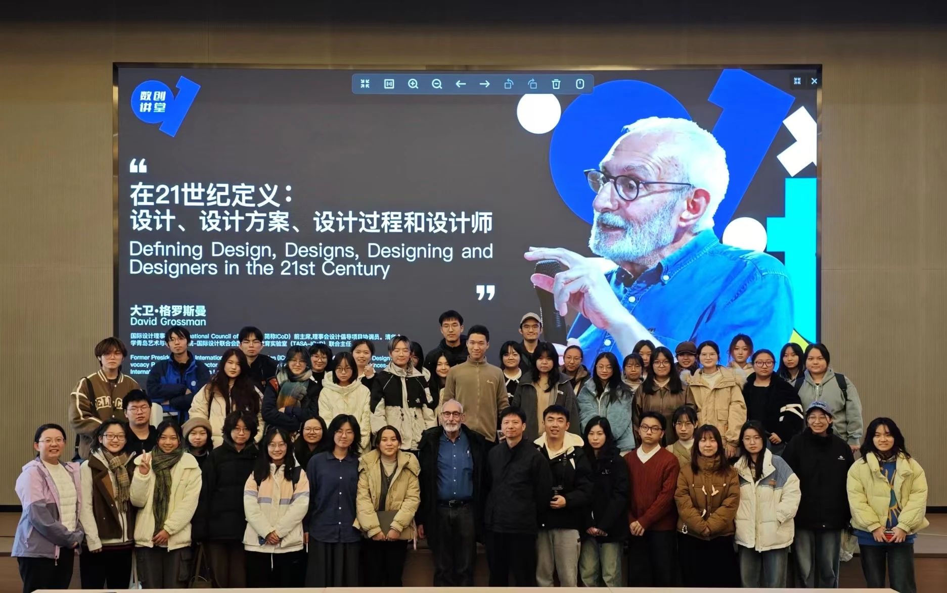 11月28日下午,国际设计理事会(International Council of Design, ICoD)前主席、理事会设计倡导项目协调员、清华大学青岛艺术与科学研究院-国际设计联合会国际设计教育实验室(TA-SA-ICoD)联合主任大卫·格罗斯曼(David Grossman)在数创大楼一楼会议厅进行主题演讲。活动由江南大学数字科技与创意设计学院院长曹鸣教授主持,王濛濛副教授担任现场翻译,学院部分教师和全体学生积极参与。