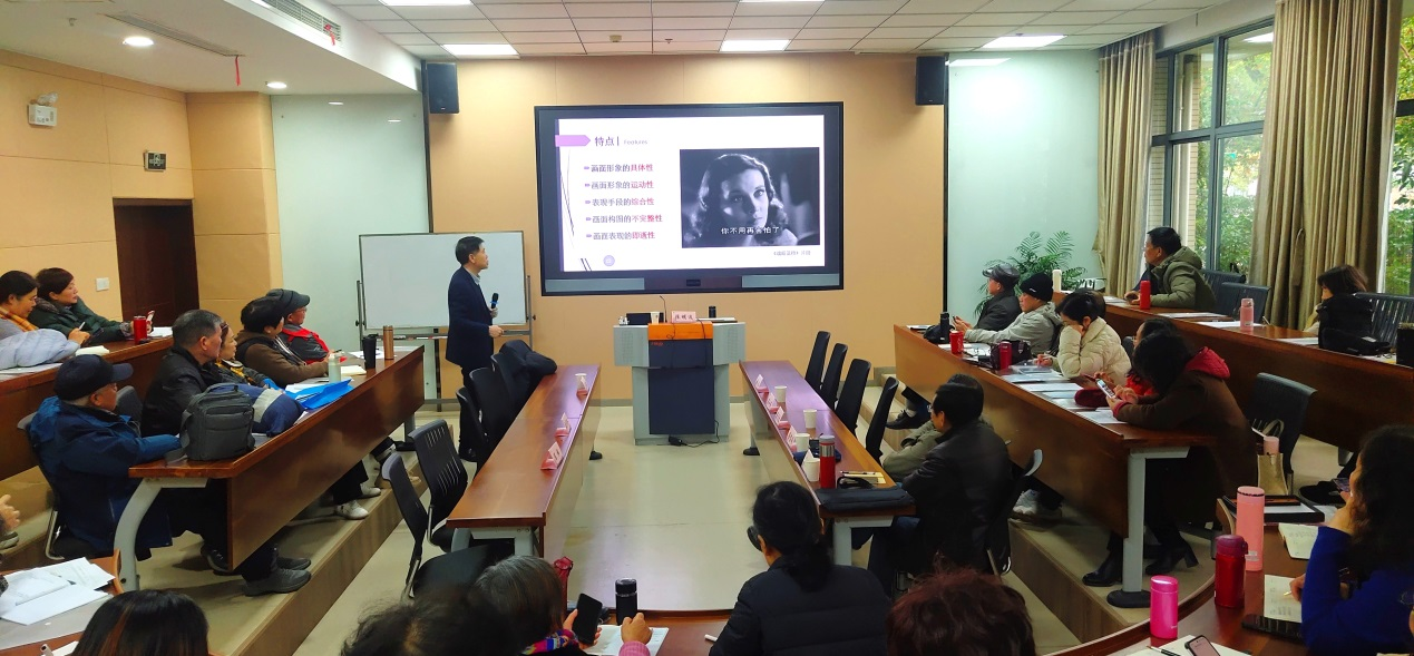 开班仪式结束后,老科协科普专委会黄正明强调了银龄培训班学习的具体要求和安全注意事项。随后由陈明选教授主讲的《基于手机的图像艺术表现与应用》课程在一片掌声中顺利启动,在活泼生动的氛围中徐徐展开。