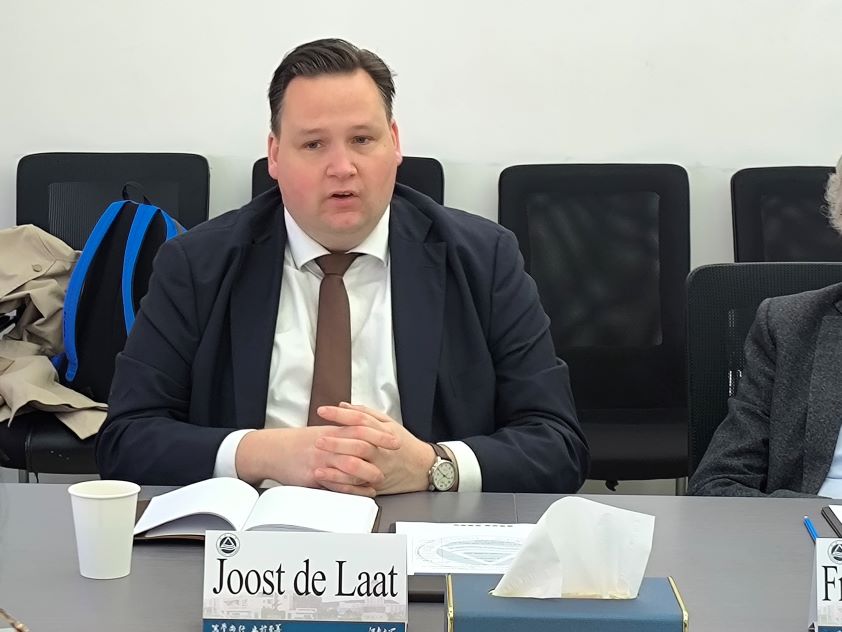 蔡建英对Joost de Laat一行再次来访表示热烈欢迎,她简要回顾自去年7月以来双方合作取得的成就以及合作项目的进展情况。她希望通过此次会谈再次加深双方之间的合作,共同推进合作项目。