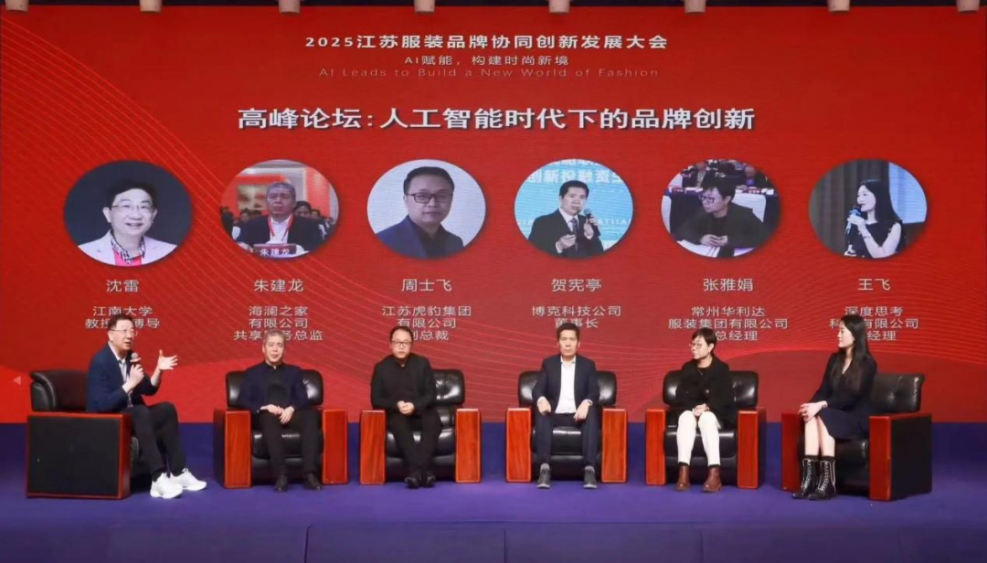 高峰论坛环节,在沈雷的主持下,海澜之家总监朱建龙、虎豹集团副总裁周士飞、深圳博克科技董事长贺宪亭等业界领袖,针对人工智能给服装品牌带来的机会和挑战,根据各自的实践,分享了自己的创新成绩和体会,有思路有实践,给在场的代表带来很多启迪。
