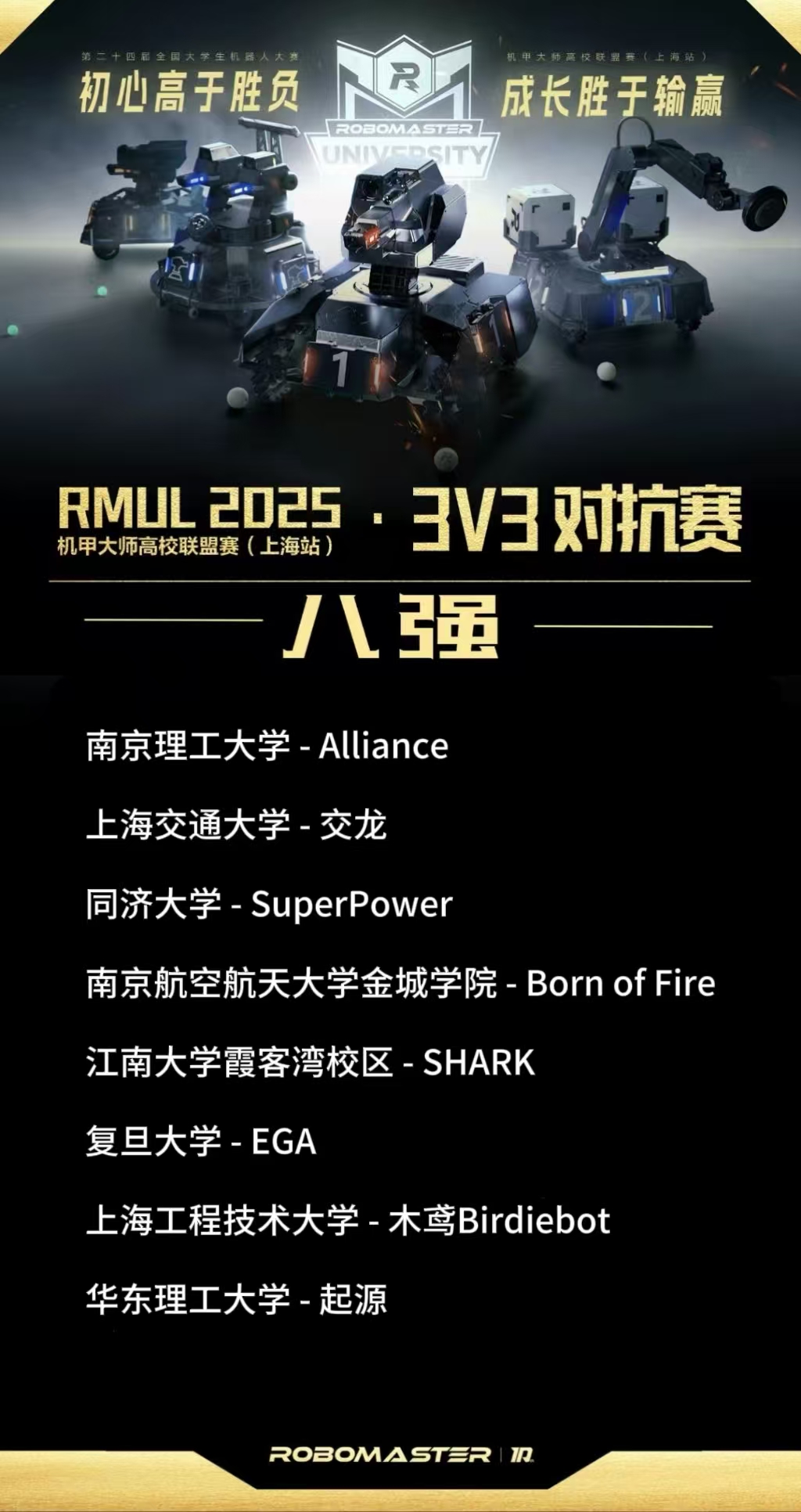 近日,由共青团中央、全国学联、深圳市大疆创新科技有限公司等共同主办的全国大学生机器人大赛RoboMaster2025机甲大师高校联盟赛(上海站)圆满落幕。江南大学霞客湾校区SHARK战队在智能制造学院(君远学院)院长李可、大学生科创中心主任宁萌老师的指导下,凭借卓越的技术表现和创新战术设计,在3V3对抗赛中首次参赛即荣获一等奖,在步兵对抗赛中获二等奖,创下我校在该项赛事中的历史最佳成绩。作为一支成立仅272天的年轻队伍,其表现充分展现了高校科研实践与工程技术融合的阶段性成果。
