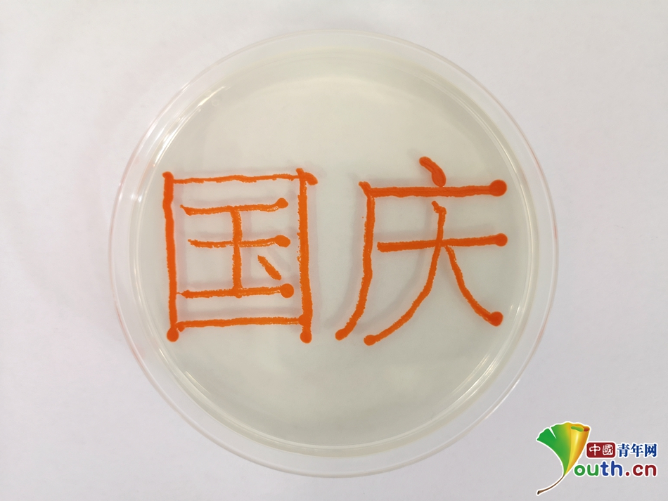 江南大学师生用细菌绘制的“国庆”字样。中国青年网通讯员 孙杨 摄