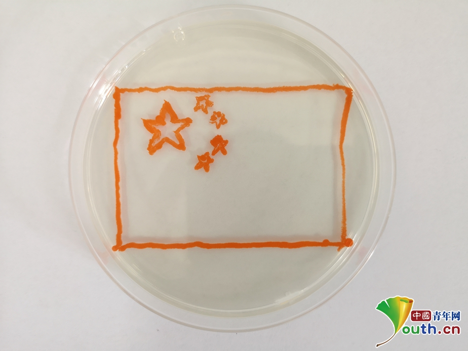 江南大学师生用细菌绘制的国旗。中国青年网通讯员 孙杨 摄