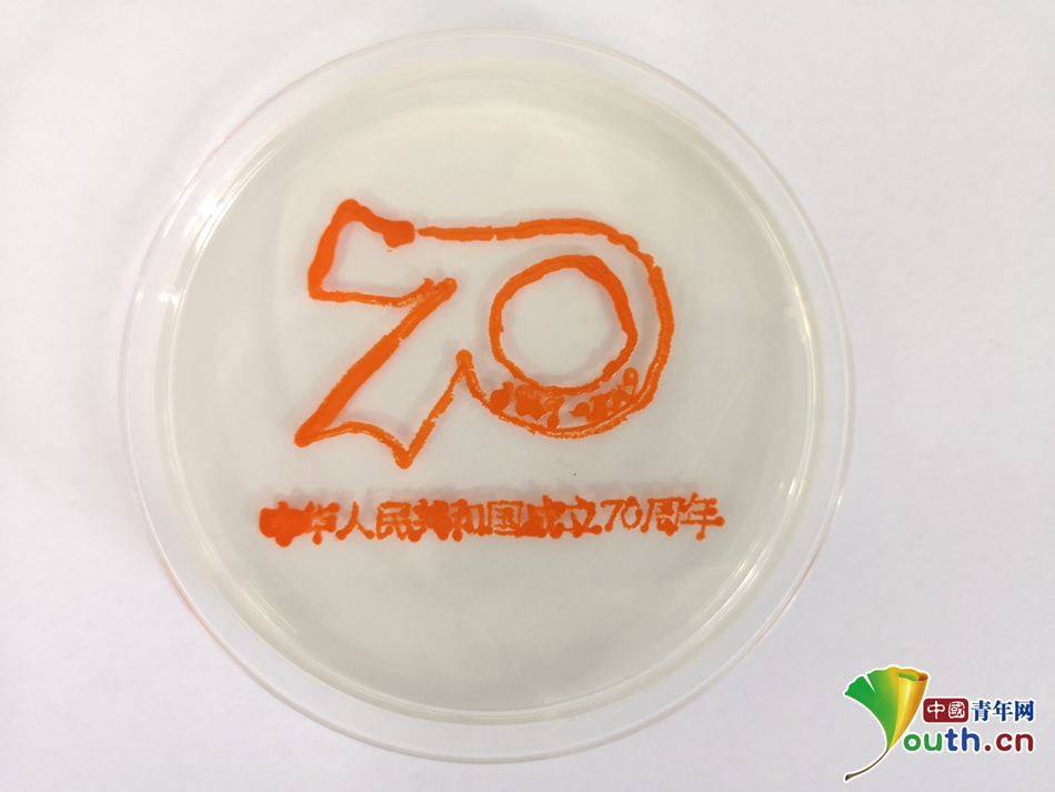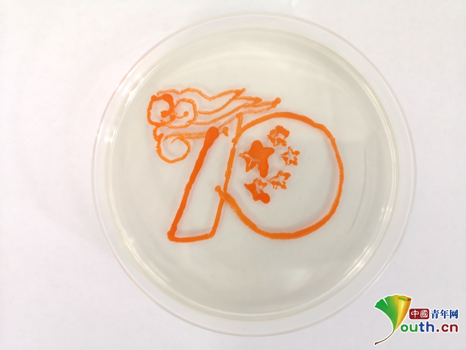 江南大学师生用细菌绘制的新中国成立70周年标识。中国青年网通讯员 孙杨 摄