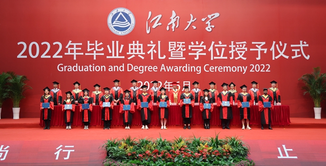 典礼结束后,江南大学2022年学位授予仪式隆重举行。各学院领导为毕业生代表拨穗正冠,校领导为毕业生代表颁发学位证书并合影留念,为同学们在江南大学的学习生涯画上圆满的句号。