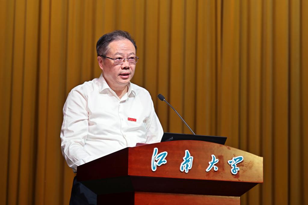 朱庆葆首先致辞。他对唐翔千先生一生爱国爱乡,守正创新,利他重教,为民族工业发展做出的巨大贡献,对国家教育事业给予的无私鼎助给予了高度赞扬,对唐氏家族以及省市各级主管领导长期以往不遗余力支持江南大学发展,对梁君彦、唐英年亲临江南大学传道授业表示感谢。