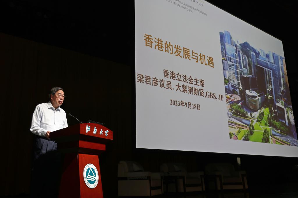 梁君彦围绕“香港的发展与机遇”作主旨演讲。他从党的二十大报告与“十四五”规划纲要所擘画的香港发展蓝图谈起,着重阐释了香港“八大中心”的新定位,指出香港要发挥在“一国两制”下背靠祖国、联通世界的独特优势,抓住大湾区的发展机遇,融入国家发展大局。梁君彦表示,实践证明,“一国两制”是一个既符合国家及香港发展根本利益,又可以保证香港长期繁荣稳定的最佳制度。展望未来,香港在“一国两制”下,一定会彰显香港优势,发挥香港作用,体现香港担当,开启由治及兴的崭新篇章。