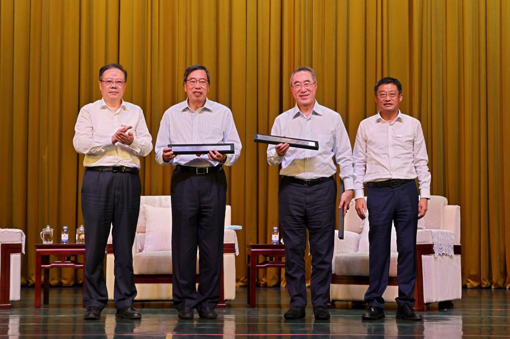 访谈结束后,朱庆葆、陈卫共同向梁君彦、唐英年赠送由江南大学教授设计的传承中华文化基因、彰显中华审美风范的“中国尺”。