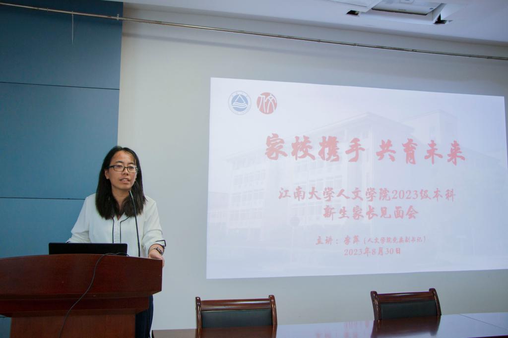人文学院党委副书记李萍主持新生家长见面会
