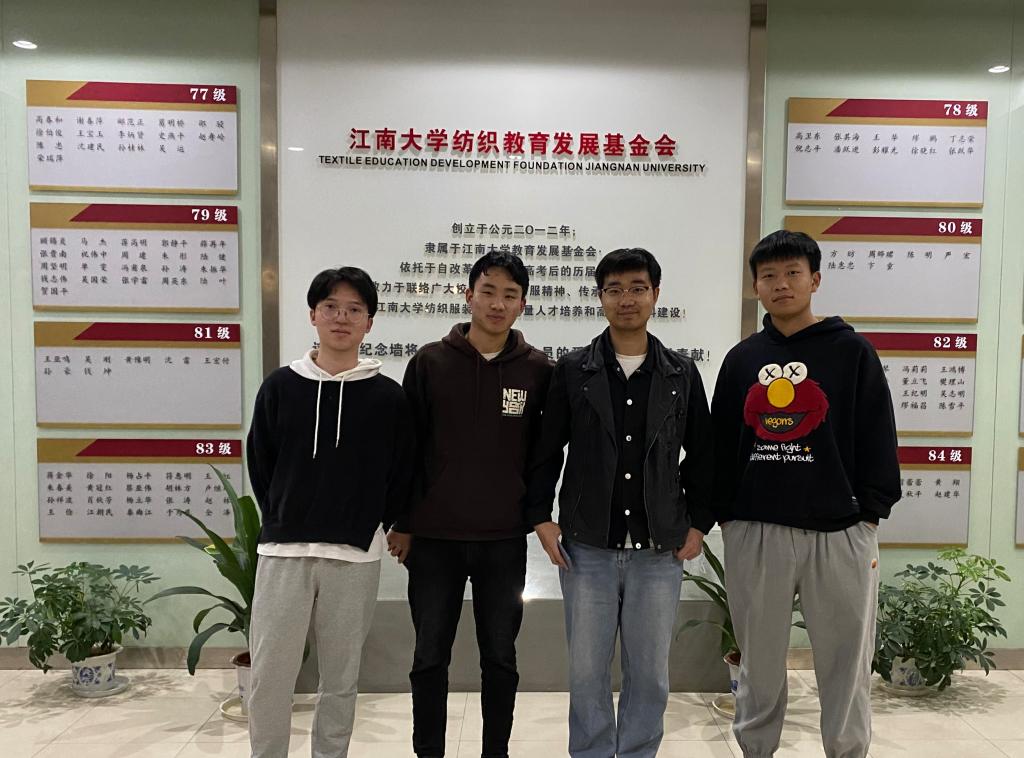 在学业成绩方面,宿舍成员经常相互督促、交流学习心得,四年间无一人挂科。累计国家奖学金1人次,省级以上赛事获奖5项,校级赛事获奖10余项,校级三好学生1次,各种奖学金共计13次,累计获得各类奖学金约3.5万元。目前,2名同学保研至厦门大学、江南大学;另外2位考研同学均以复试总成绩第一名分别录取至华南理工大学、江南大学。在科研竞赛方面,宿舍成员共参与国家级大创两项,校级大创一项;合作完成课题“HITP基导电MOF复合织物传感器”,并获得“汇川杯”纺织智能设计大奖赛全国一等奖。在文体实践方面,宿舍成员累计参加参与锡马、人民医院导医导诊等活动十余次,总志愿时长达500小时以上,每个人都在各自的位置上发光发亮。