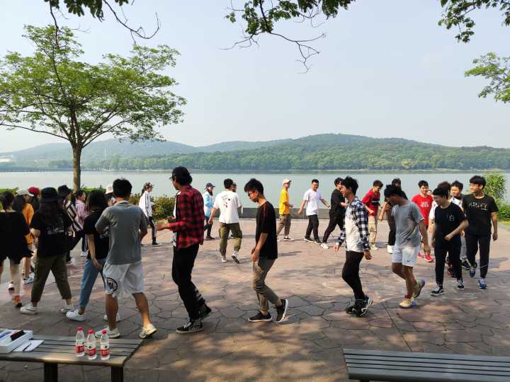 户外素拓,团队协作增默契。5月12日上午,学院青年马克思主义者训练营在蠡湖公园开展了素质拓展活动。全体成员齐心协力,共同完成了“泡泡糖”“虾王争霸赛”“寻找最美微笑”等活动。而其中令同学们印象最深刻的是“盲走”这个活动。除了排在第一位的引路人,每位同学都带上眼罩,彼此手拉手向前行进。一位同学在活动结束时忍不住分享道:“第一次在一个完全未知的处境中,去试着完全投入地相信一个人。这种感觉有点奇妙,又有点美好。”同学们通过这个活动切身体验到了团队中信任的力量,增进了彼此的感情与默契。