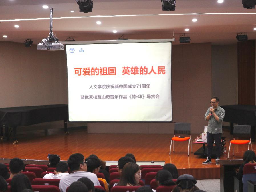 9月24日下午,人文学院庆祝新中国成立71周年暨优秀校友山奇音乐作品《芳·华》导赏会在北区大学生活动中心音乐厅成功举行,本次活动由人文学院团委、人文学院分工会联合举办,江南大学工会主席黄壮霞、人文学院院长助理王芳出席此次导赏会,活动由人文学院分团委书记黄凤琼主持。