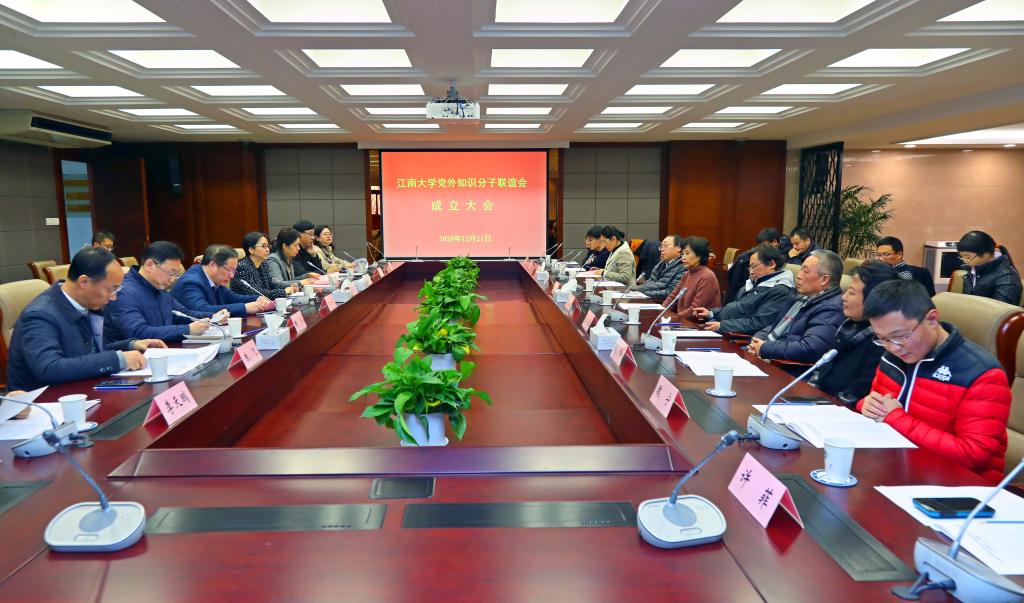 12月21日下午,学校党外知识分子联谊会成立大会在行政楼B305会议室召开。校党委书记朱庆葆,校党委常委、党委统战部部长朱飞,江苏省委统战部五处二级调研员周宁,江苏省委教育工委统战与群工处副处长郝峰,无锡市委统战部副部长刘列,无锡市无党派知联会副会长、校教务处副处长武戈,无锡市无党派知联会秘书长李天鹏以及学校各民主党派负责人、党外知识分子联谊会会员参加会议。周宁与朱飞共同为江南大学党外知识分子联谊会揭牌,刘列宣读江南大学党外知识分子联谊会第一届会长、副会长名单。会议由校党委统战部副部长王冰主持。