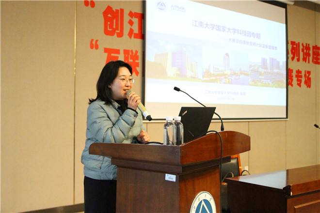 讲座过程中,杨宏华就如何撰写高质量项目申报书及制作路演PPT对参赛团队进行培训,她从项目选题、市场分析、核心痛点、解决方案、团队管理和财务融资六方面出发,结合大赛获奖案例进行详细讲解,为团队准备参赛材料提供规范指导,并鼓励大家平时多关注学科前沿和社会热点、痛点、难点,深耕研究领域,潜心钻研,在水到渠成中收获成功。张翼就支持对象、支持内容、政策梳理、赛事服务等方面向现场学生详细介绍了江南大学国家大学科技园在高水平双创赛事方面针对参赛项目落地所提供的支持计划和配套服务。