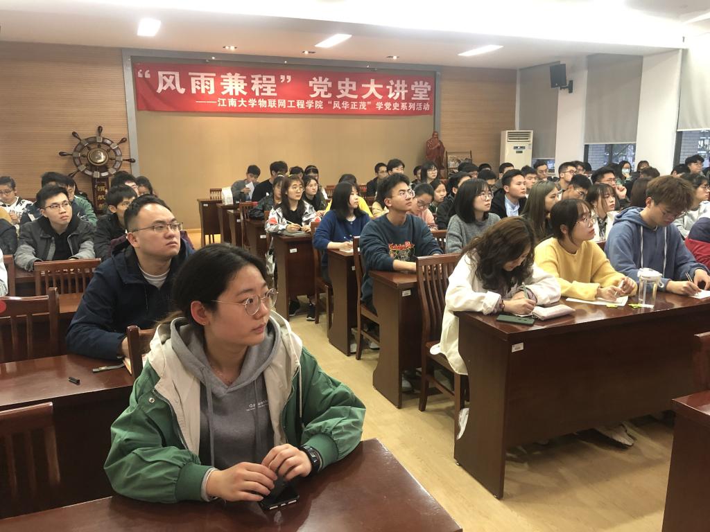 3月30日晚,物联网工程学院“风雨兼程”党史大讲堂第二讲在学院B310会议室顺利开讲。院关工委常务副主任吴锡生教授担任主讲嘉宾,90余位党员及发展对象参加活动。活动由院党委副书记、副院长孔丽丹主持。