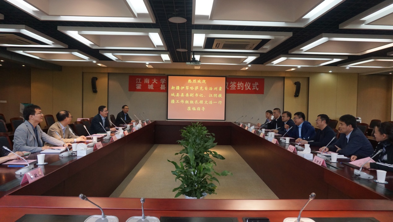 4月23日下午,新疆伊犁哈萨克自治州霍城县县委副书记、江阴援疆工作组组长顾文浩一行来校交流合作。江南大学副校长顾正彪、产业技术研究院和食品学院相关负责人参加。会议由产业技术研究院院长刘龙主持。