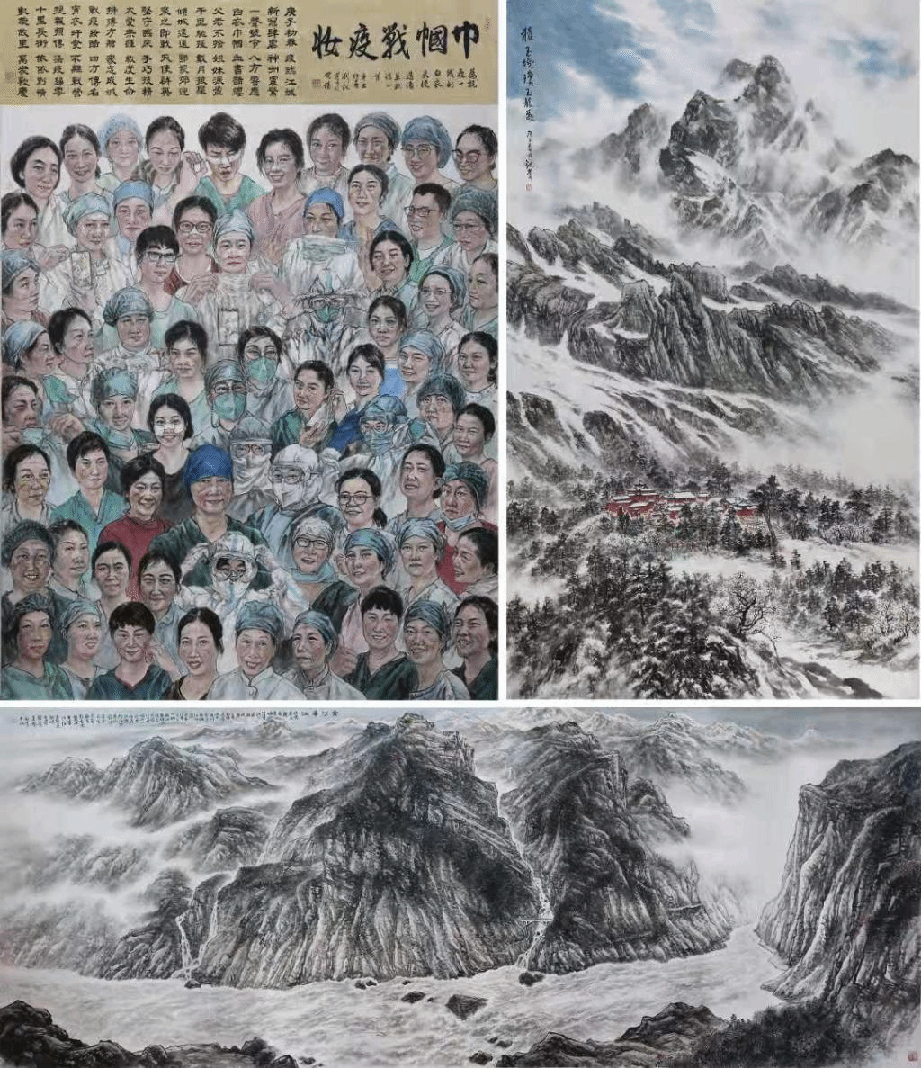 本次画展展出了刘观庆教授近年来创作的《水墨霞客路》山水画、《抗疫群英谱》人物画作品等130余幅。其中,2020年新冠疫情期间,刘教授深受广大医护工作者和各界人士的伟大抗疫精神感染,连续创作了《抗疫群英谱》人物画作品30幅,并在一个月内完成了2米高的《巾帼战疫妆》巨幅群像国画作品,向逆行天使致敬。《水墨霞客路》山水画创作则是刘观庆长期以来的心愿,他多年来追随徐霞客足迹,遁行于大江南北名山大川之间,深入至湖广云贵危峰溶洞之中,积累了真切的视觉经验和丰富的创作素材,创作出了一批气势恢弘、意境深远的《水墨霞客路》山水画作品。展出期间受到无锡市民和艺术界人士的广泛关注,参观者络绎不绝。