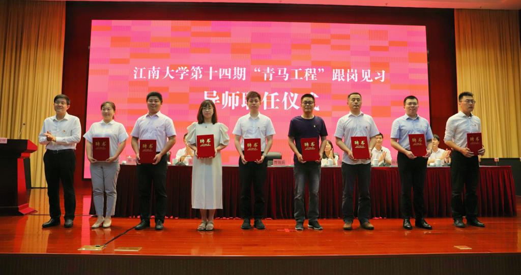 仪式中,贾效兵为第十四期“青马工程”跟岗见习导师代表颁发了导师聘书;周雪晖为第十四期“青马工程”学员代表授旗;孔祥年宣读了第十四期“青马工程”跟岗见习岗位分配情况;贾效兵与周雪晖共同为滨湖区——江南大学区校青年人才共建联盟揭牌。