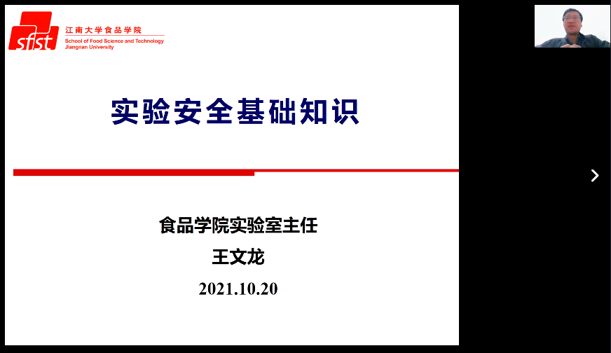 10月20日下午,食品学院2021级本科生新生实验安全教育讲座在线上顺利举行。学院实验室主任王文龙受邀担任主讲,全体2021级本科生新生参加了讲座。讲座由2021级本科生辅导员曹敏主持。