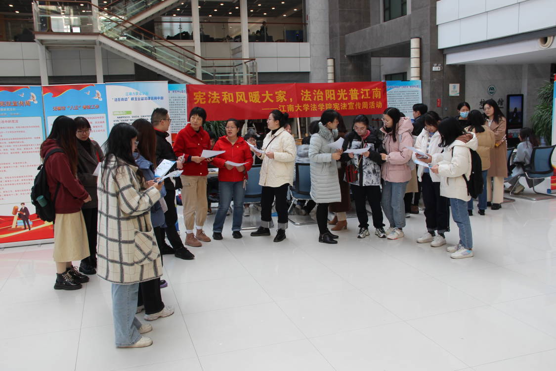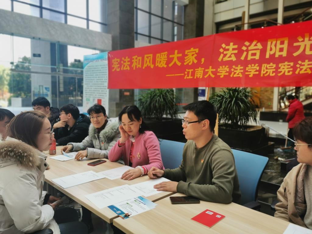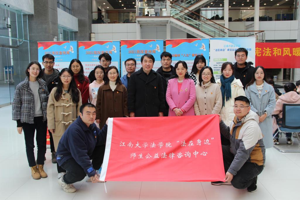 为了进一步普及宪法知识,增强师生法律意识,法学院于12月3日在江南大学公益图书馆一楼大厅举办了“宪法和风暖大家,法治阳光普江南”宪法宣传周活动暨“法在身边”师生公益法律咨询中心启动仪式。法学院党委书记杨杰,党委副书记、副院长张慧琪,副院长叶敏、法律系支部书记胡杰,社会科学处副处长杨恋恋,综合科潘泳、吴玥,基地科史华伟,“法在身边”师生法律咨询团队20人出席了本次活动。