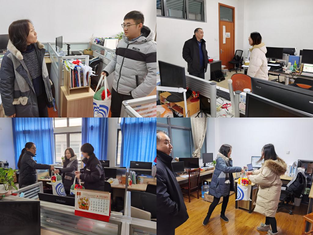 新春将至情更切,心系学子暖人心。1月28日上午,物联网工程学院党委书记程捷音、院长谢林柏、党委副书记孔丽丹、分团委书记吴垚一行深入研究生学习室、实验室、学生宿舍走访慰问留校学生,关心了解他们在校生活、学习、科研、及返家行程等情况,嘱咐安全事项,并向他们送去慰问品和新春祝福。