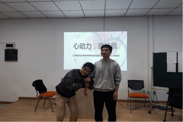 为进一步加强研究生心理健康教育工作,缓解科研压力,11月1日下午,人工智能与计算机学院心理辅导员杨玉莹在信息楼B118学生团体辅导室带领20余名硕士开展了以“心动力,助远航”为主题的研究生期间的压力调试团体心理辅导。