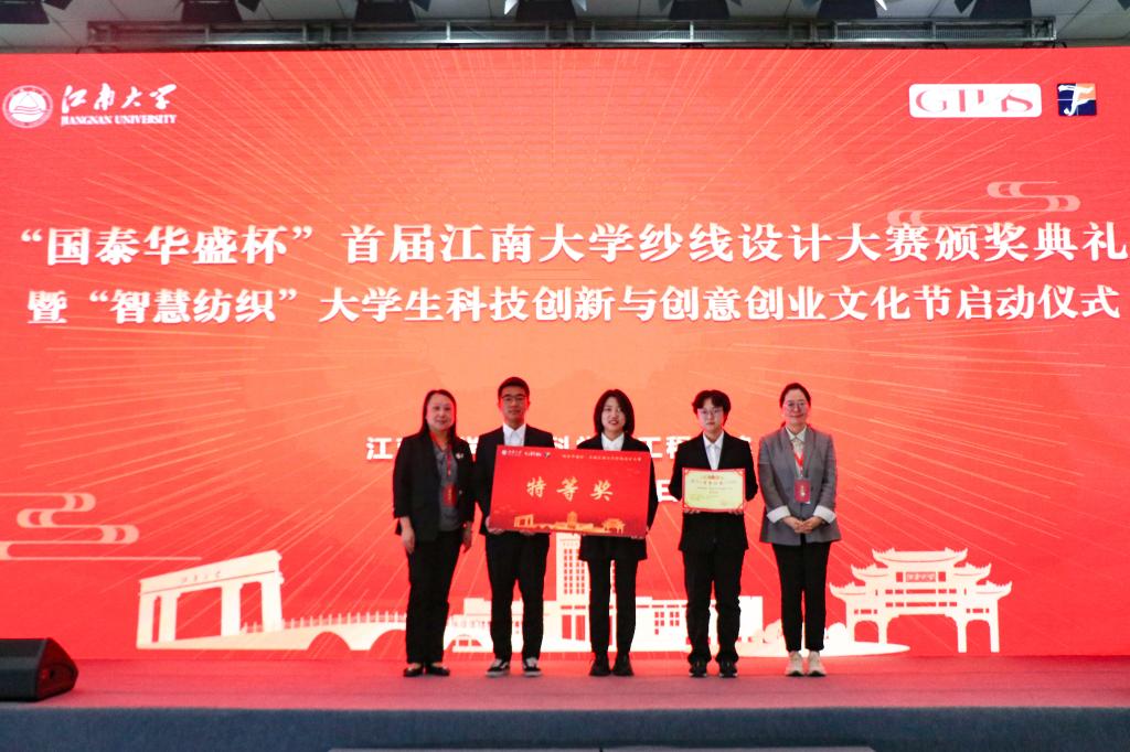 11月2日,2022年“智慧纺织”大学生科技创新与创意创业文化节启动,由江南大学主办,江南大学纺织科学与工程学院承办,江苏国泰华盛实业有限公司冠名并支持的“国泰华盛杯”首届江南大学纱线设计大赛在纺织科学与工程学院同期举行。