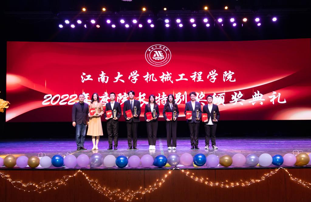 迎新晚会展现学院师生风采的同时,以“院长特别奖颁奖”等形式融入了育人元素,为新生树立榜样。俞建峰、王利强分别宣读机械工程学院2022年度学科竞赛获奖名单与省、市级荣誉获奖学生名单。院长特别奖颁奖典礼环节中,李可宣读获奖学生名单,赵军华为获奖学生颁发奖杯、证书,并合影留念。院长特别奖作为学院最高荣誉奖项,旨在表彰在学习、科研、志愿活动、学院贡献等方面有突出表现的学生。院长特别奖获得者吴翔宇同学为大家带来诗朗诵《青春中国》,激昂的语调、丰沛的情感,展现出了青年的使命担当与蓬勃朝气。
