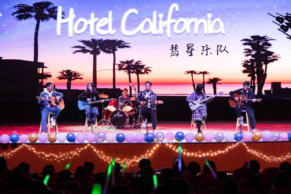 晚会在吉他社、爆炸就是乐队带来的歌曲《Run away》中热烈开场。所爱隔山海,山海皆可平,机械研究生会与侵晨乐队一起带来的《山海》以声入耳,激起热爱。“疲惫的旅人可否停下脚步”,由2022级新生组成的彗星乐队用简单的器乐与悦耳的歌声为观众带来美妙的歌曲《加州旅馆》,音乐缓缓流入每一位观众心里。ATS音乐剧社带来的《屋檐》以轻缓音乐剧的形式叙述“待檐外风雨,渐停息,等春风吹起,又相遇”的温暖故事,细腻的演绎引人入胜。袅袅笛声、喃喃细语,机械研究生与汉服社携手演绎《青花瓷》,展现江南人对传统文化的传承,精美的服饰与发型令观众赞叹不已。十年青春如歌,记忆中的你从青涩走向成熟,机械新生用歌舞演绎《十年》,少年人的解读最能引发同龄人的共鸣。“为你写下诗篇,最美的诗是你的名字”,一首《为你写诗》动人心弦,别出心裁。鼓点与律动皆是青春的色彩,机械研究生会与江大舞协带来的街舞《帕特思瑞》燃爆全场。少女的征途是星辰大海,机械研究生的舞蹈节目《Pink Venom》展现玫瑰肆意绽放的风采,引发全场尖叫。舞台继续,机械2204班带来的舞蹈《你要跳舞吗》融入被单、面罩、灯牌多种元素,在律动中传递欢乐。