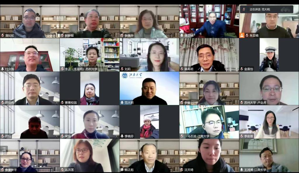 12月28日下午,《服装学报》第二届编委会成立大会以线上方式举行。第二届编委会主任、中国工程院院士、武汉纺织大学校长徐卫林,江南大学原副校长高卫东,编委会副主任、东华大学服装与艺术设计学院院长李俊,北京服装学院科技处处长王永进,无锡学院副校长梁惠娥,江南大学纺织科学与工程学院院长付少海,浙江理工大学服装学院院长崔荣荣,编辑部主任、江南大学纺织科学与工程学院副院长潘如如以及江南大学纺织科学与工程学院党政领导,《服装学报》第二届编委会全体委员共40余人出席会议。江南大学党委常委、副校长顾正彪出席会议并致辞,会议由江南大学科研院院长范大明主持。